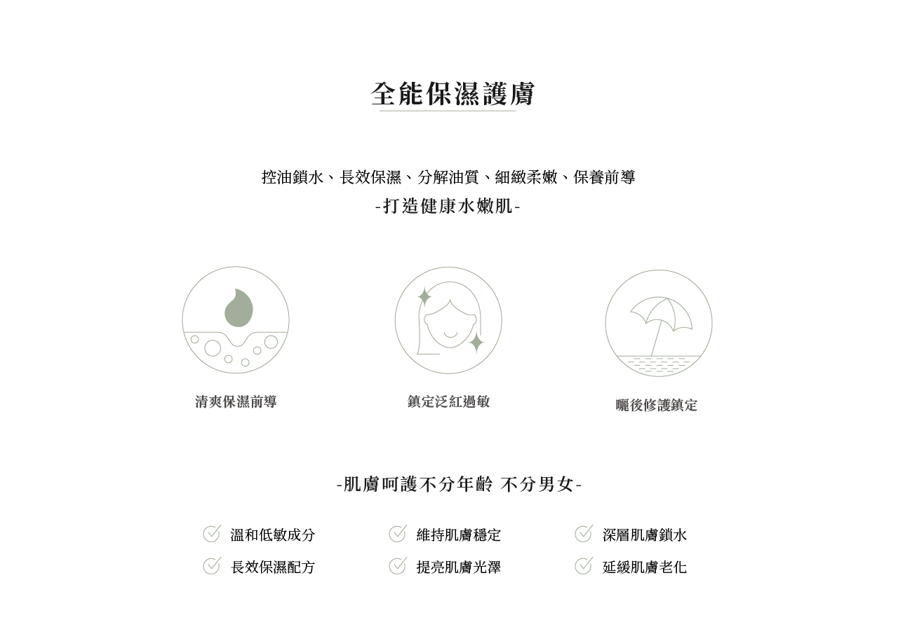 控油鎖水 X 長效保濕 X 穩定舒緩