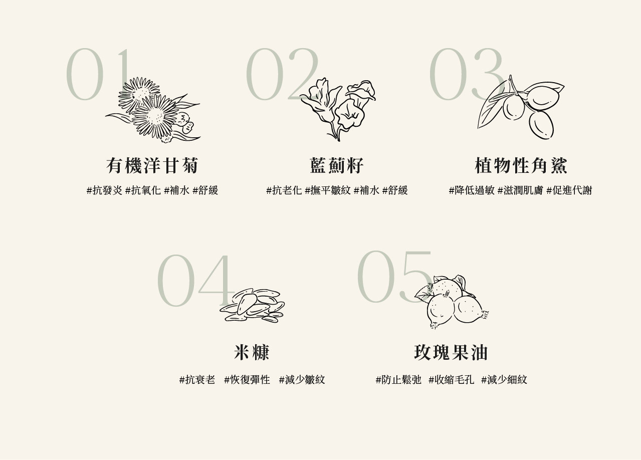 純素的保養與植物萃取的溫和配方,讓所有膚質能夠輕易達到全方位的保養。
