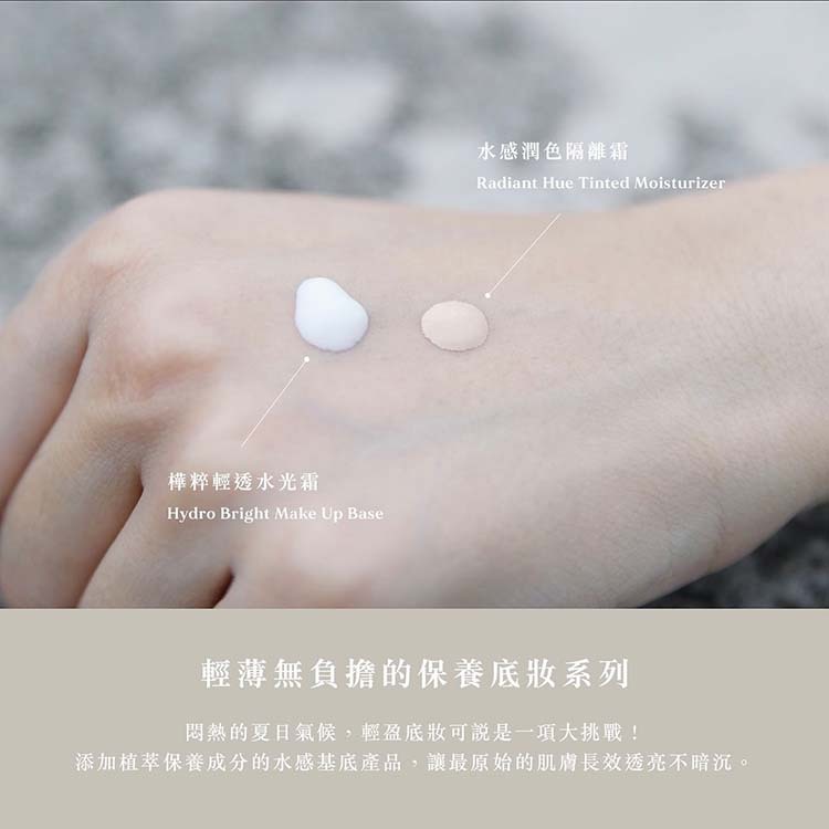輕盈提亮的自然輕透妝感,添加樺樹成分萃取及耐磨擦配方,質地水潤輕薄,提供肌膚保護層及鎖水功效,作為妝前打底使用。