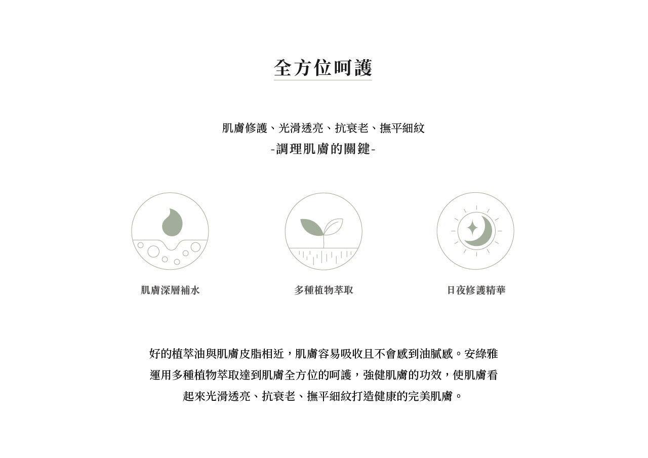 純素的保養與植物萃取的溫和配方,讓所有膚質能夠輕易達到全方位的保養。