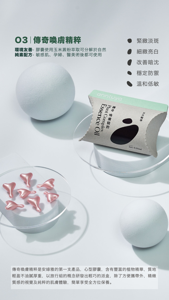 O3傳奇喚膚精粹為安綠雅的第一支產品,品牌最經典全植物成分暢銷商品!