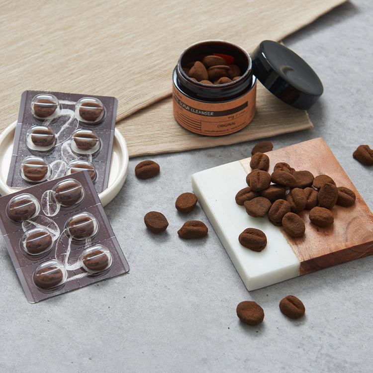 來自韓國的Pilling Bean 獨有技術,以咖啡豆概念為發想,製成固態顆粒去角質磨砂,溫和清除污垢老廢角質,一粒即可清潔全臉。